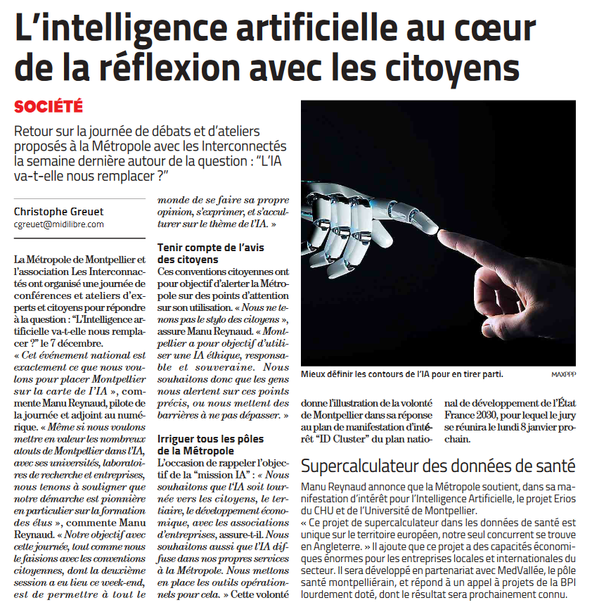 L’intelligence artificielle au cœur de la réflexion avec les citoyens : Manu Reynaud (Midi Libre 11.12.2023)